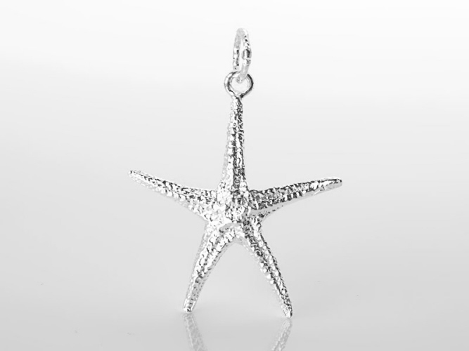 Dank der Bearbeitung durch ein selbst entwickeltes Verfahren, ist die Ähnlichkeit mit einem echten Seestern verblüffend. Dieser Anhänger ist Teil der Linie "Stelle del Circeo" und wurde mithilfe von Mikro-Fusionen von natürlichen Seesternen in Silber 925 abgegossen. Durch die besondere Oberfläche besitzt es die Eigenschaft, das Gesicht jeder Frau zum Leuchten zu bringen.